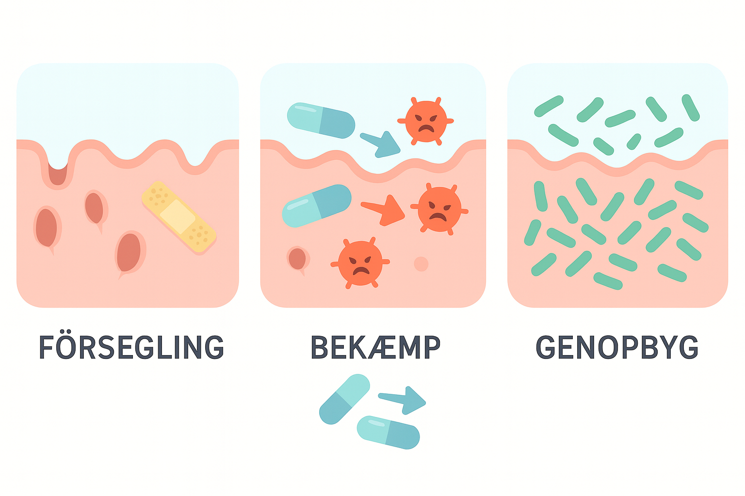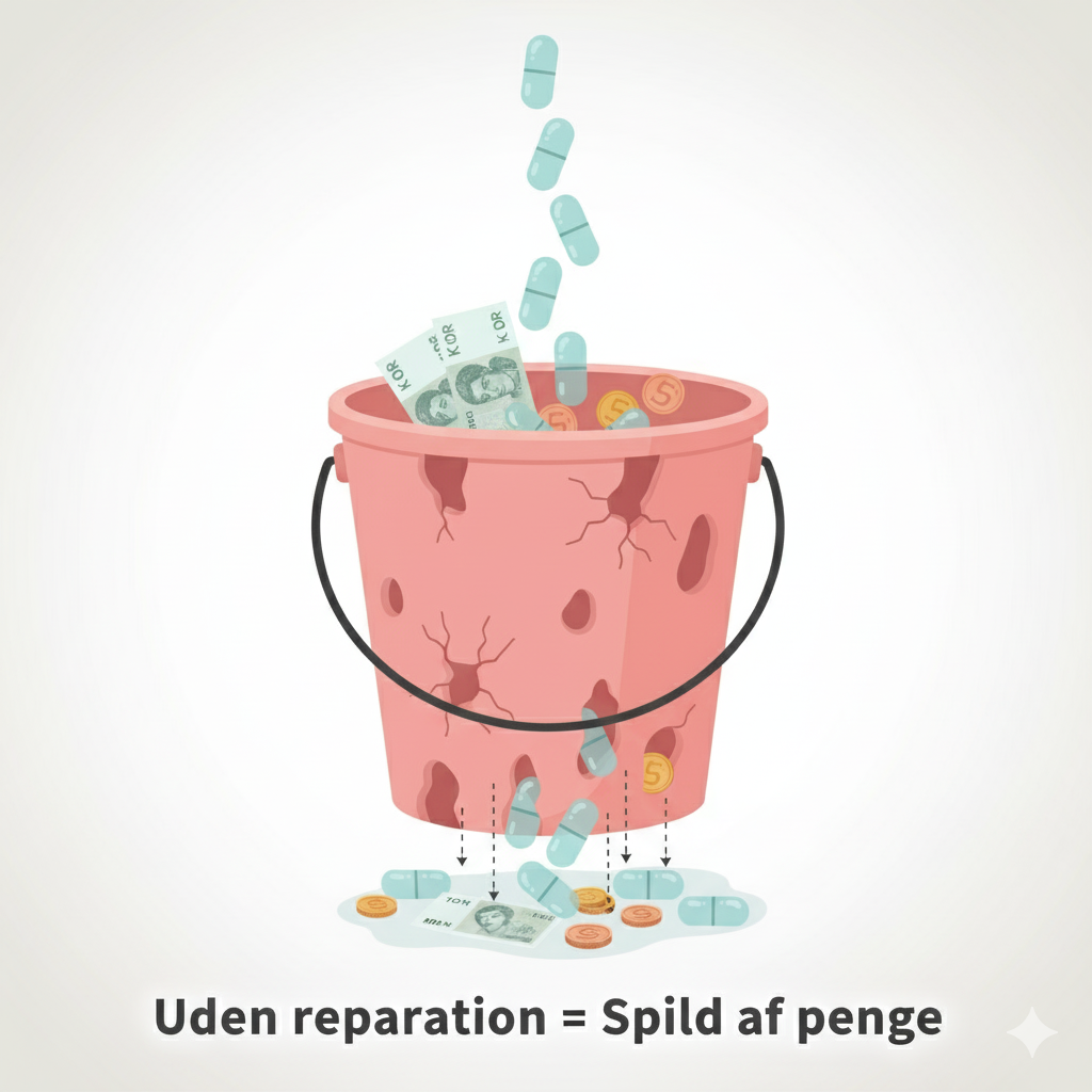De fleste probiotika tilføjer bare "gode bakterier" – men hvis tarmvæggen stadig er beskadiget og lækker, forsvinder bakterierne næsten med det samme.